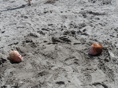 I guess our first beach day was an unexpected bonus, as the weather was predicted to be awful. It wasn't actually as grey as the pictures suggest... though you can see in the two pictures below the shift in weather during the afternoon!