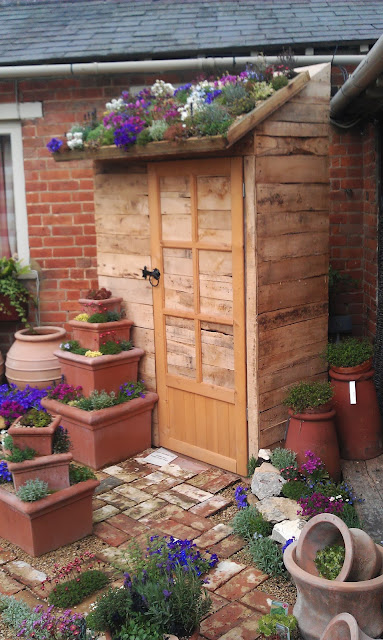 I especially loved the 'green' roof on this little shed and the chimney pot style planting surrounding it.  Wouldn't it look gorgeous in a little court yard garden?