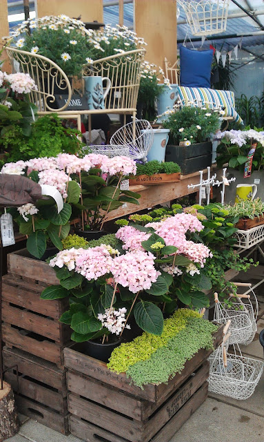 Last month we made a family visit to Buckinghamshire, we spent some lovely relaxing time at Waddesdon Plant Centre.  It's a long time favourite haunt of mine, to while away a couple of hours... to drink up beautiful displays and maybe a coffee or two.