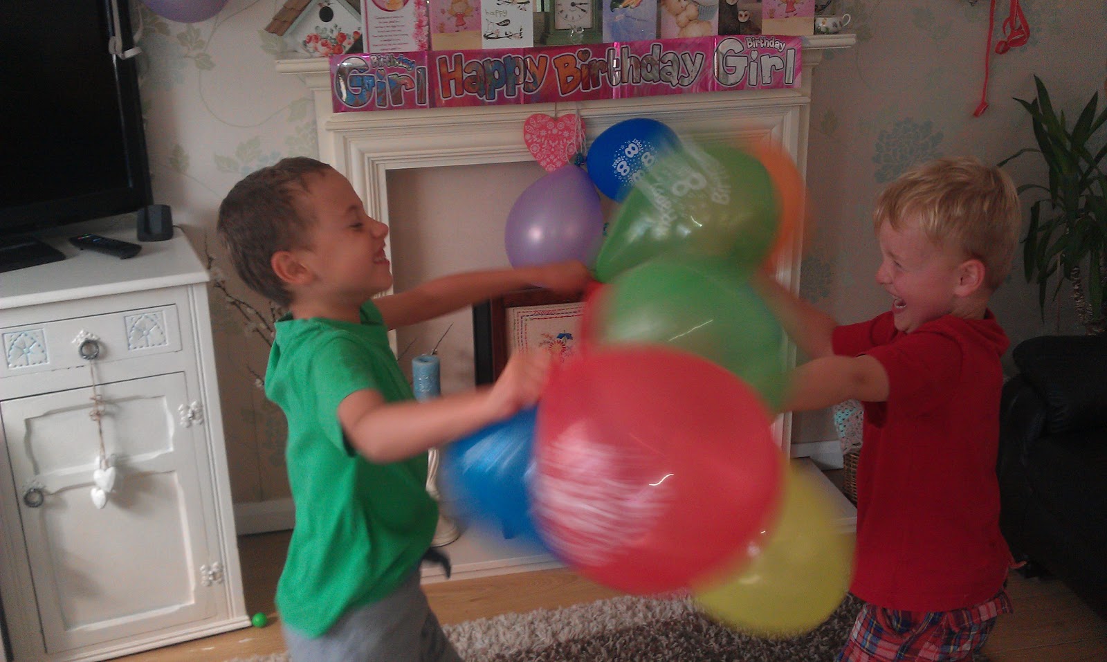 Billy had his best friend over for the party too - they enjoyed the balloons - perhaps a little too much!