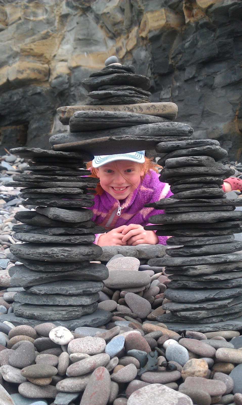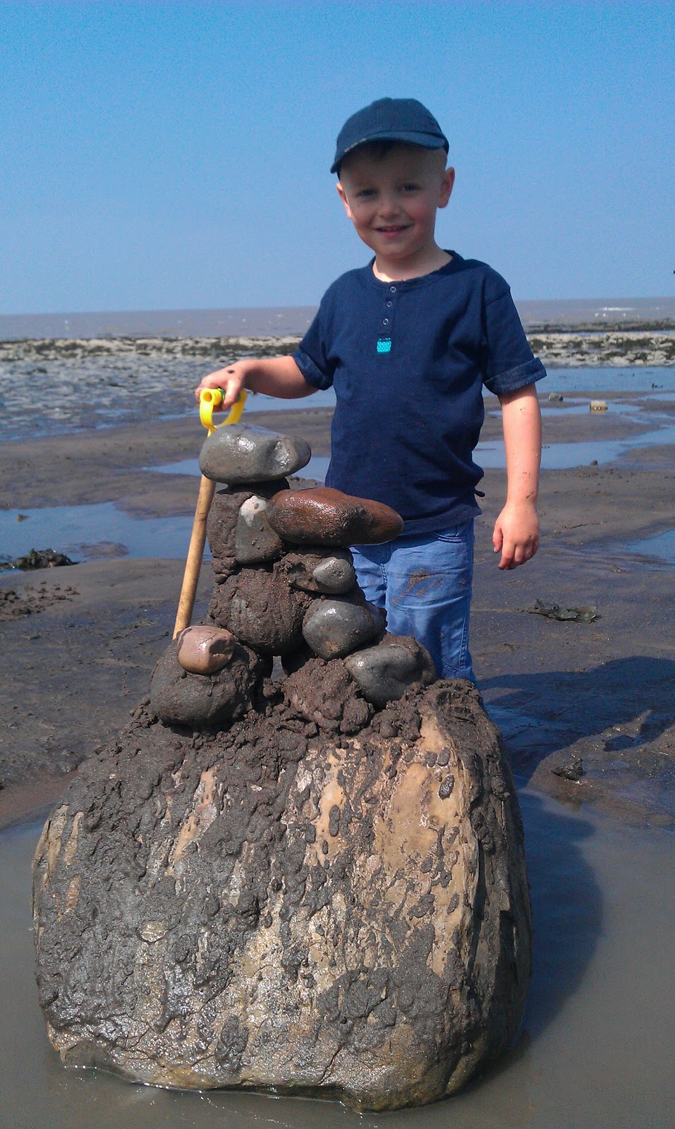 While the tide was high little man broke rocks for a full hour!! He knelt, selected a rock that simply 'could not be broken' and smashed away. Little lady built towers of rock but was much happier once more of the beach became exposed and there was water to play with!