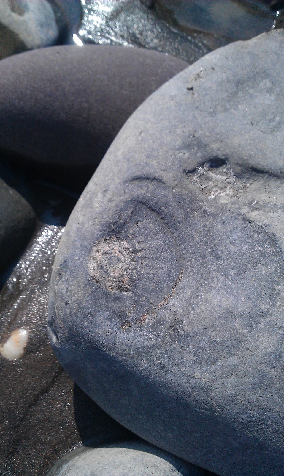 It was fascinating to see the folds of rock and the layers of minerals laid historically with huge boulders deposited sporadically by the power of ice and sea. As the slate layers break away with the impact of the sea, the pebbles enclosed within are released with their fossilised remains.