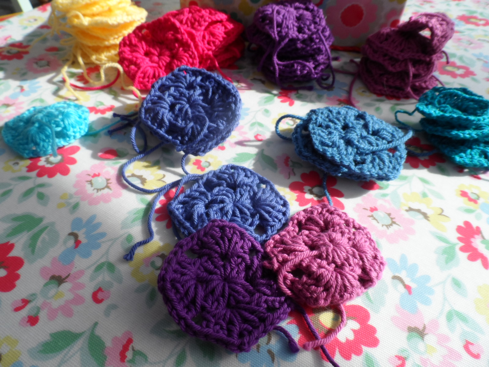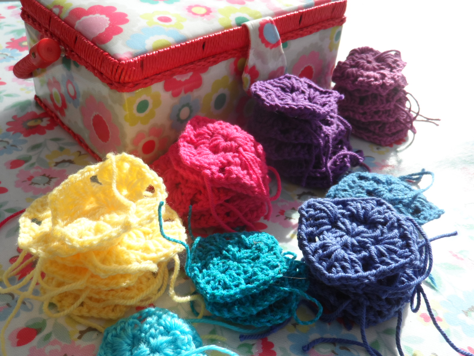 I love the idea of my crochet beginnings. The idea of working towards my goal of a sumptuous crocheted blanket is as much enjoyment for me as the finished article. It's the process that gives me pleasure. Something to work on, feel inspired by and something that can visually progress each time I can grab a moment. So doubtless there will be much stacking and unstacking of little piles before I can 'ta dah' my finished blanket.