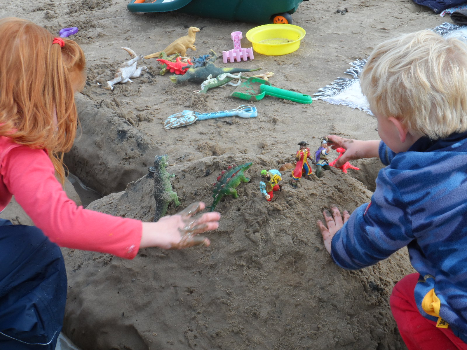 Little B had asked to go here since returning to school. He had plans to make another dinosaur island and we took pirates too to add to the adventures. The sand here is so pliable that it 'holds' water in its moats rather than it seeping away!! This means after a little digging, smoothing and sculpting we can produce a riproaring dinosaur island.