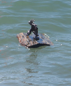 R found a piece of drift wood, which served fantastically as a surf board for her werewolf.