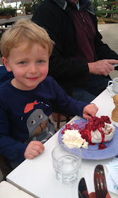 1. Ahh, it was a rather enormous meringue!! With raspberry coulis and whipped cream! Almost bigger than him! Crazy - he was sure of his choice tho ;0) J9 x
